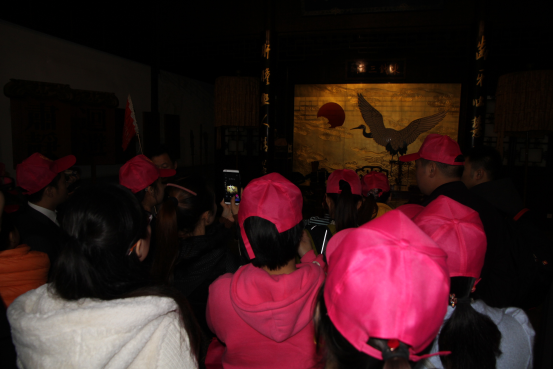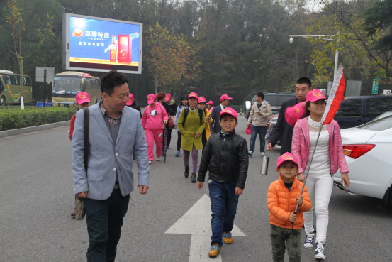 在導(dǎo)游的帶領(lǐng)下員工興高采烈的出發(fā)